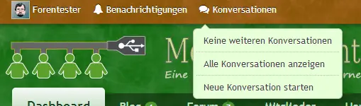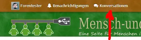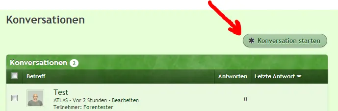 Eine Konversation kann man starten, in dem man auf den Knopf Konversationen drückt.