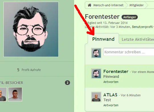 Im Profil eines Mitgliedes gibt es die Möglichkeit einen Kommentar zu hinterlassen, welcher für alle sichtbar ist. Diese Variante nennt sich Pinnwand.